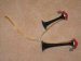 | Air Horns w/Canister | Stebel Junior dual sound air horns were installed by asc. | The first picture shows the original air horns removed from my car. 2 and 3 are pictures of horns I found on ebay. The horns are exactle the same but the canister is slightly different. It does not say "Stebel Junior" and has an oil cap in the top. | |