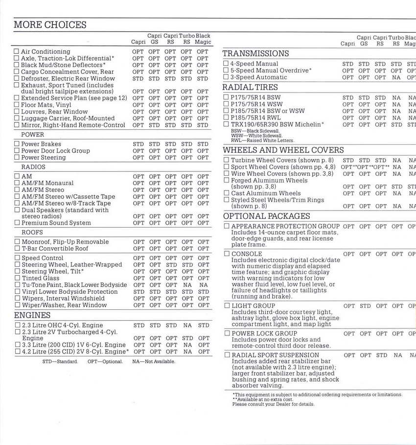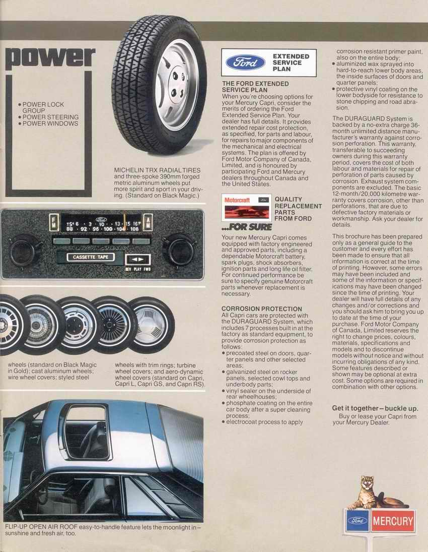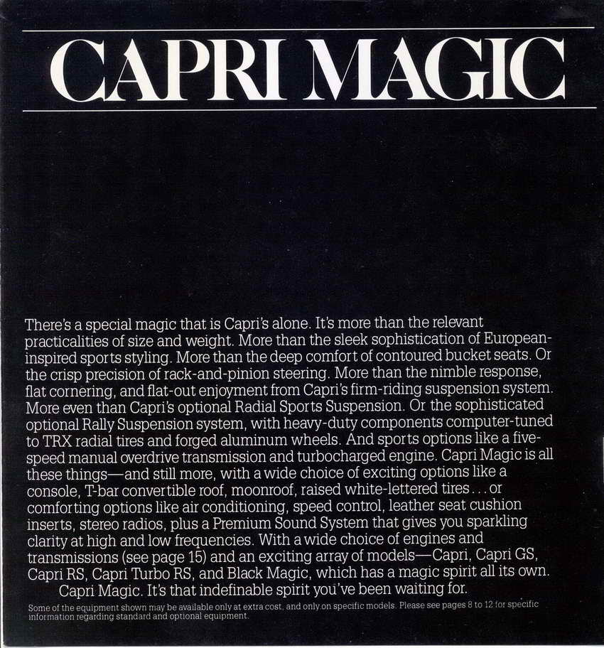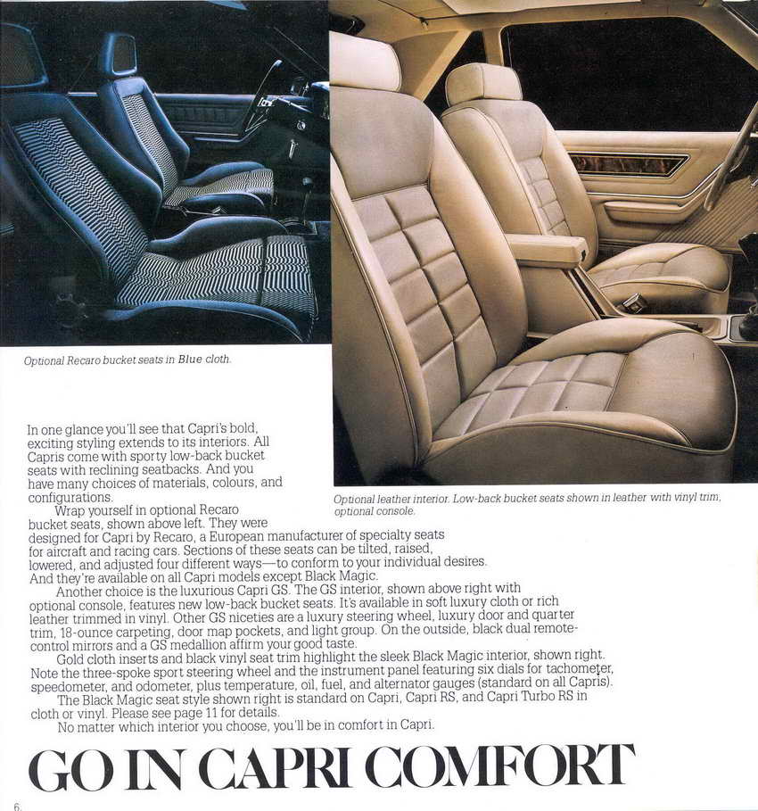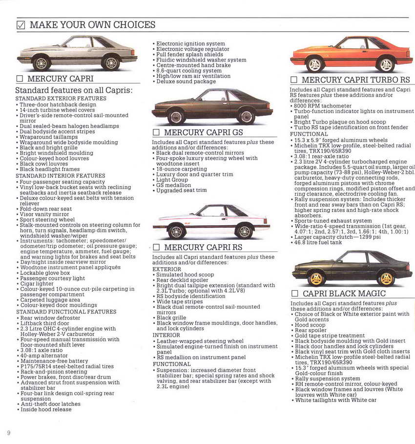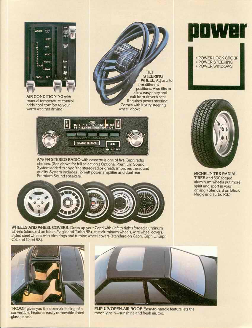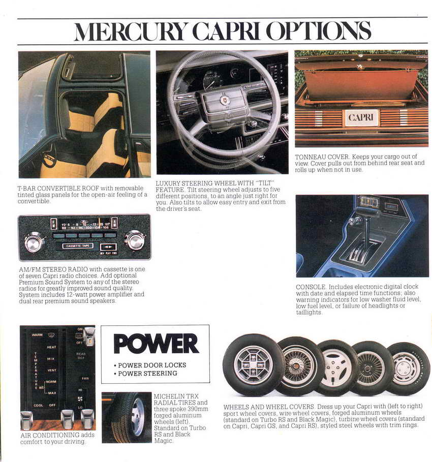 Capri Turbo RS is available. Power windows aren't mentioned.