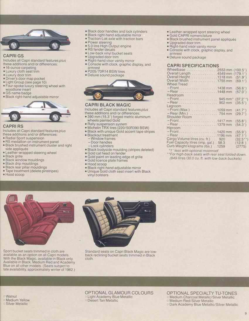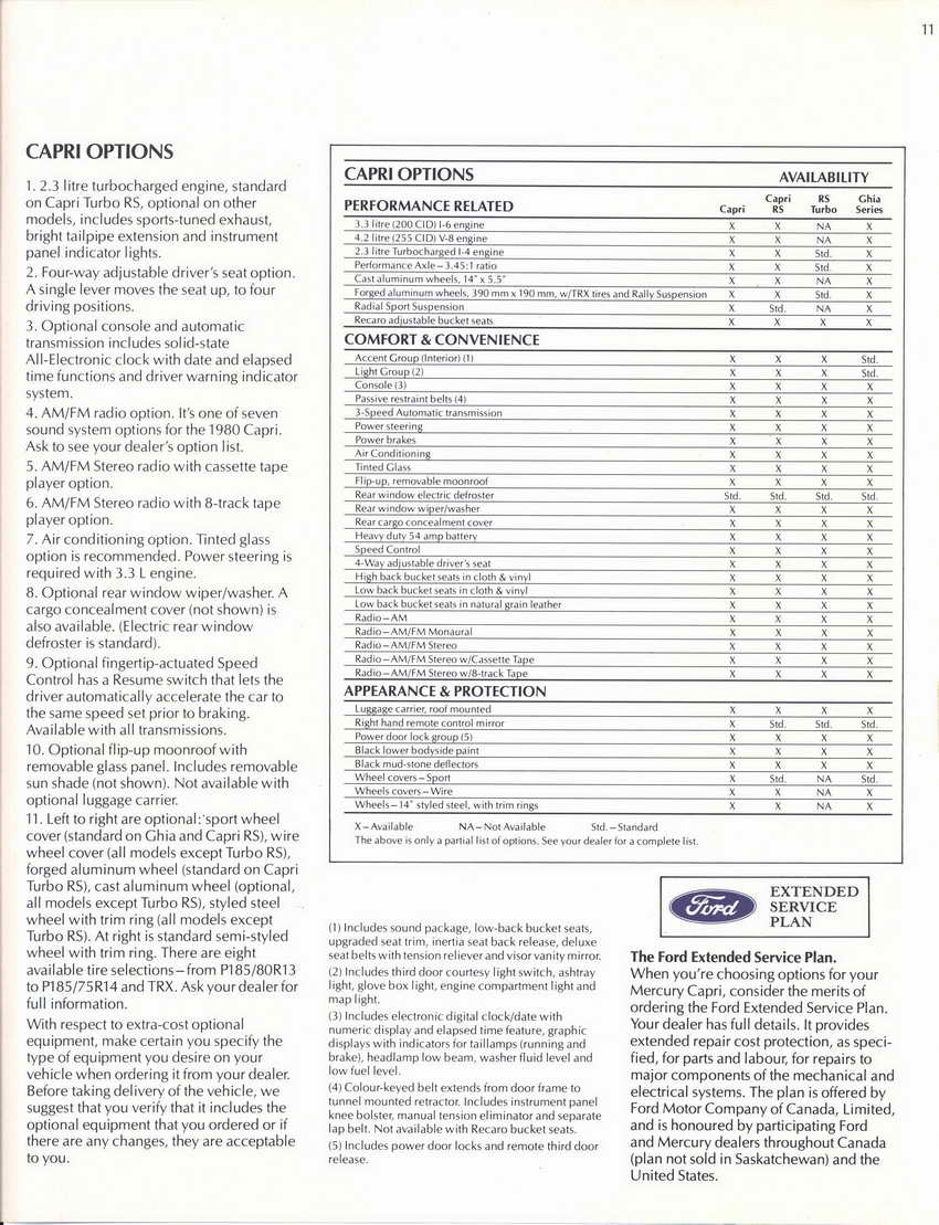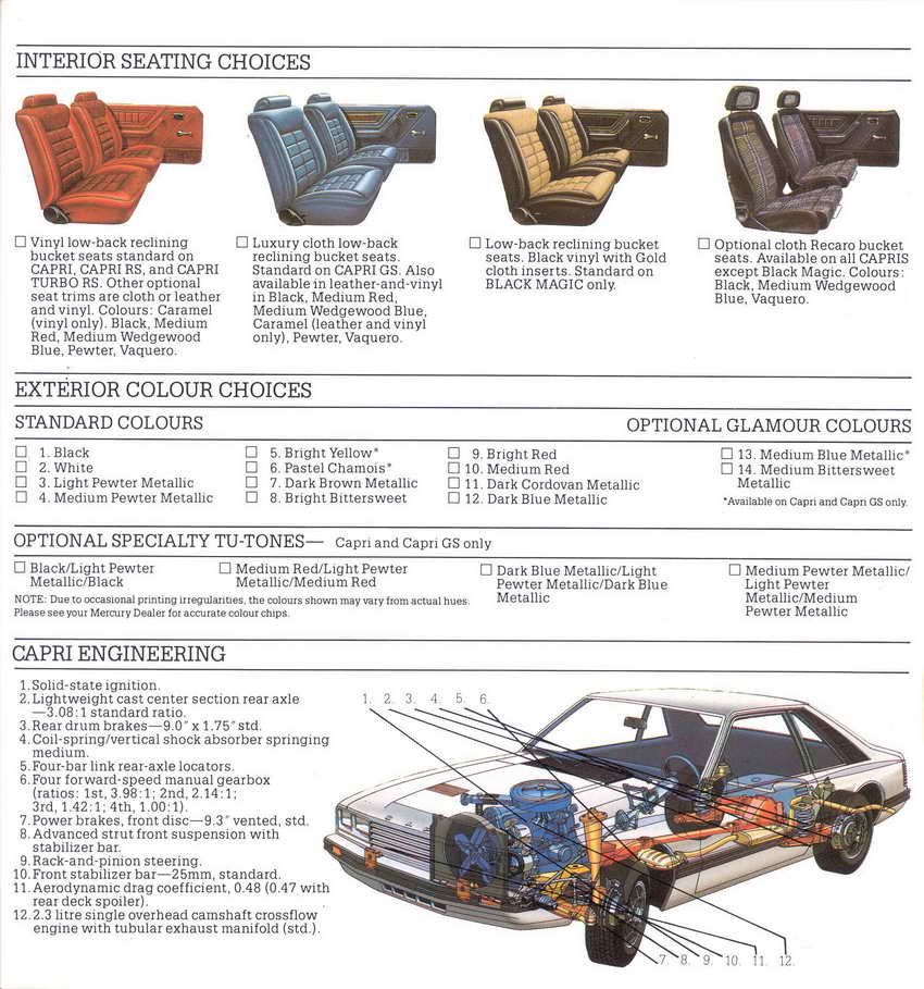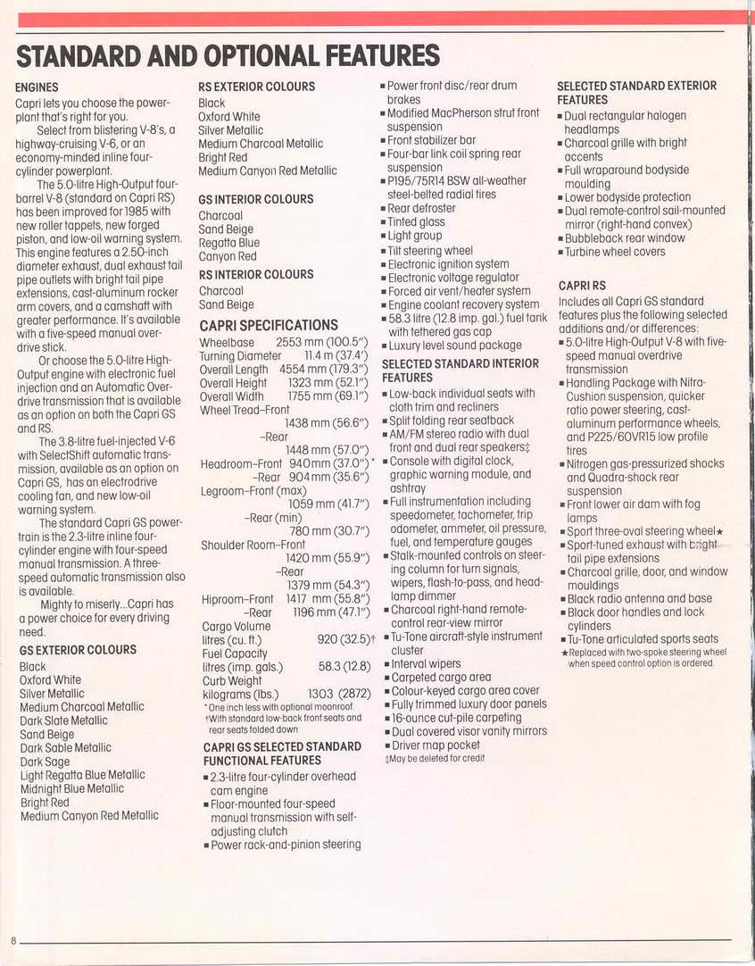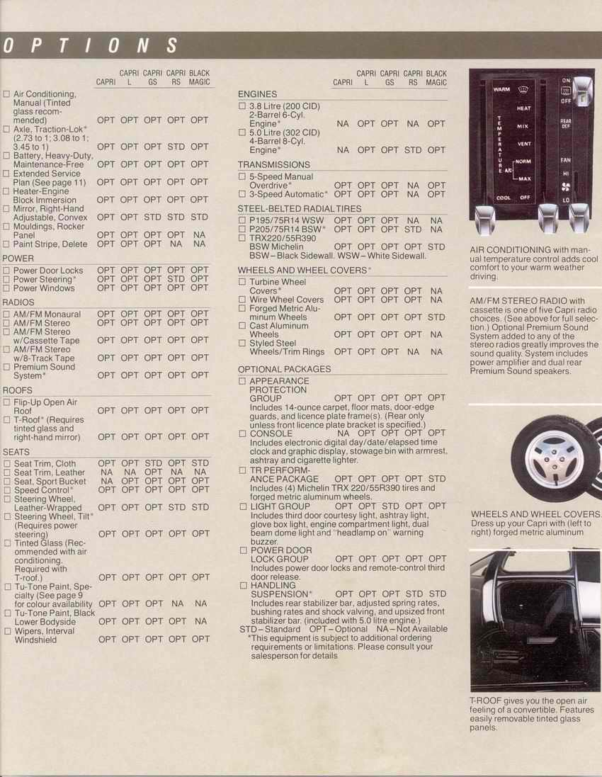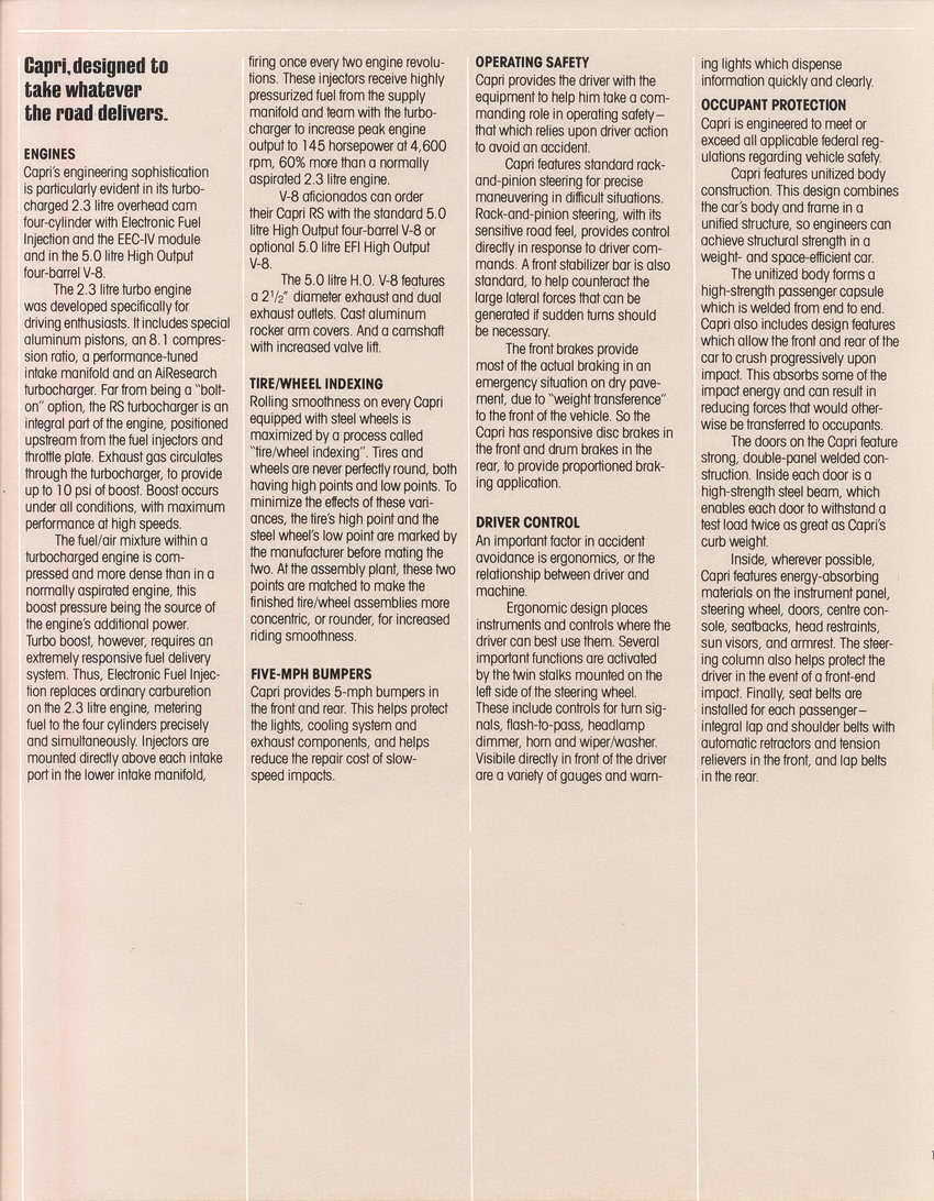 Capri Turbo RS is available. Power windows aren't mentioned.