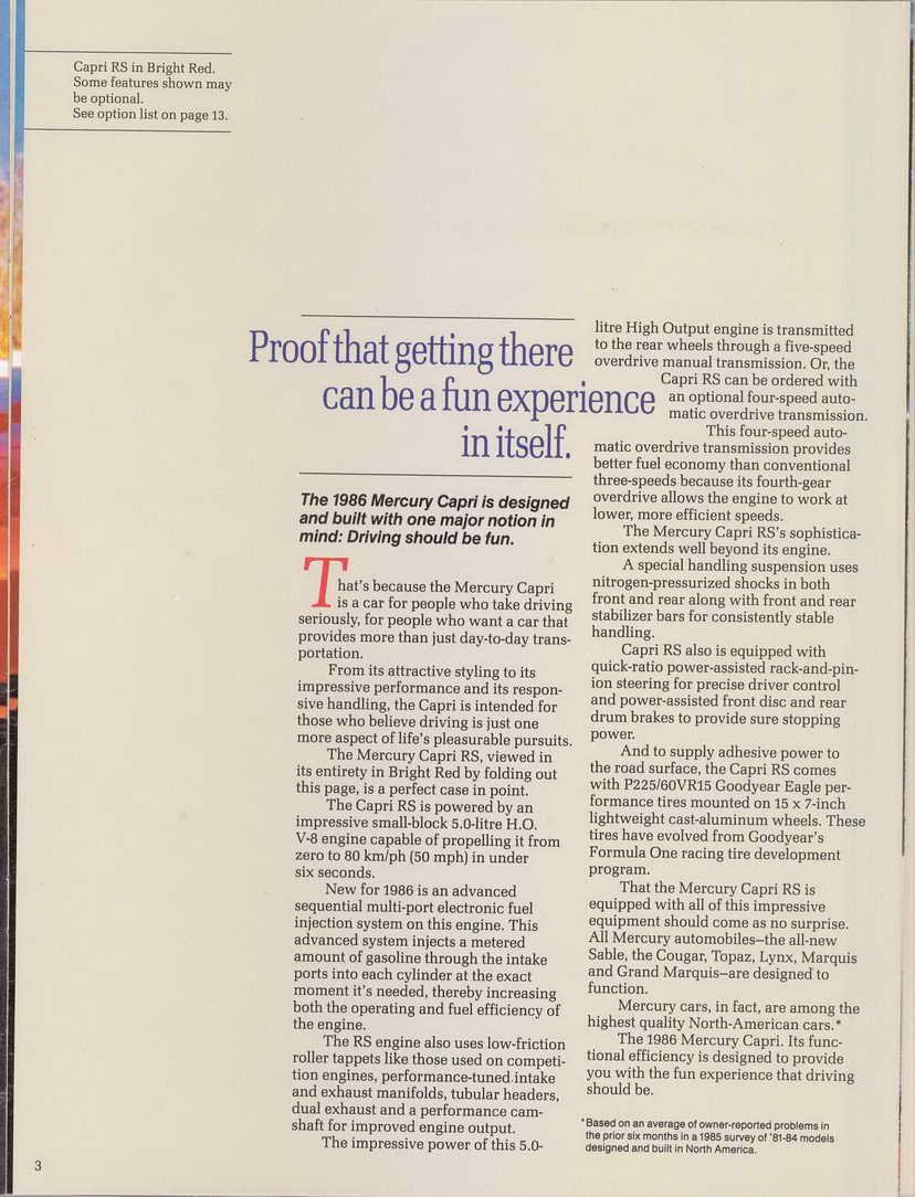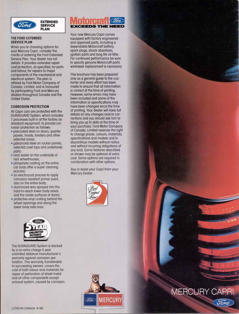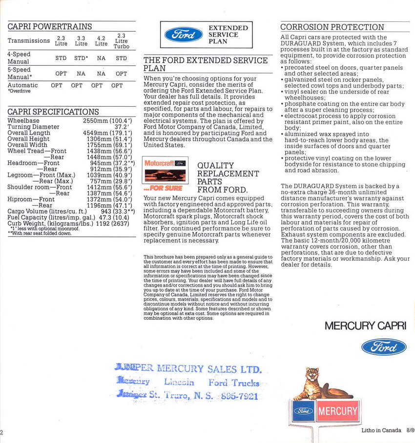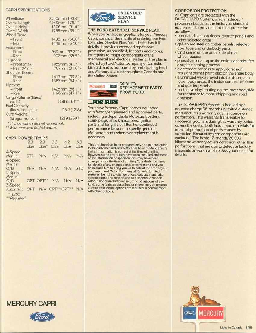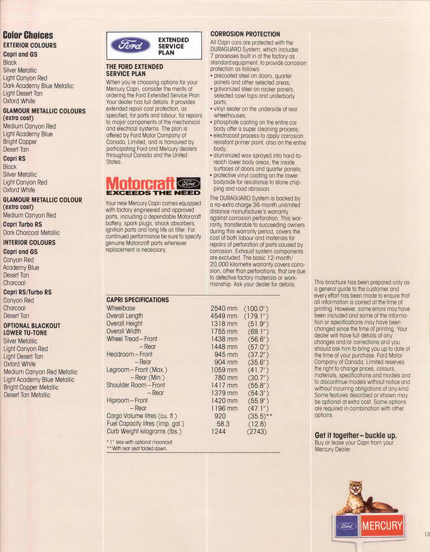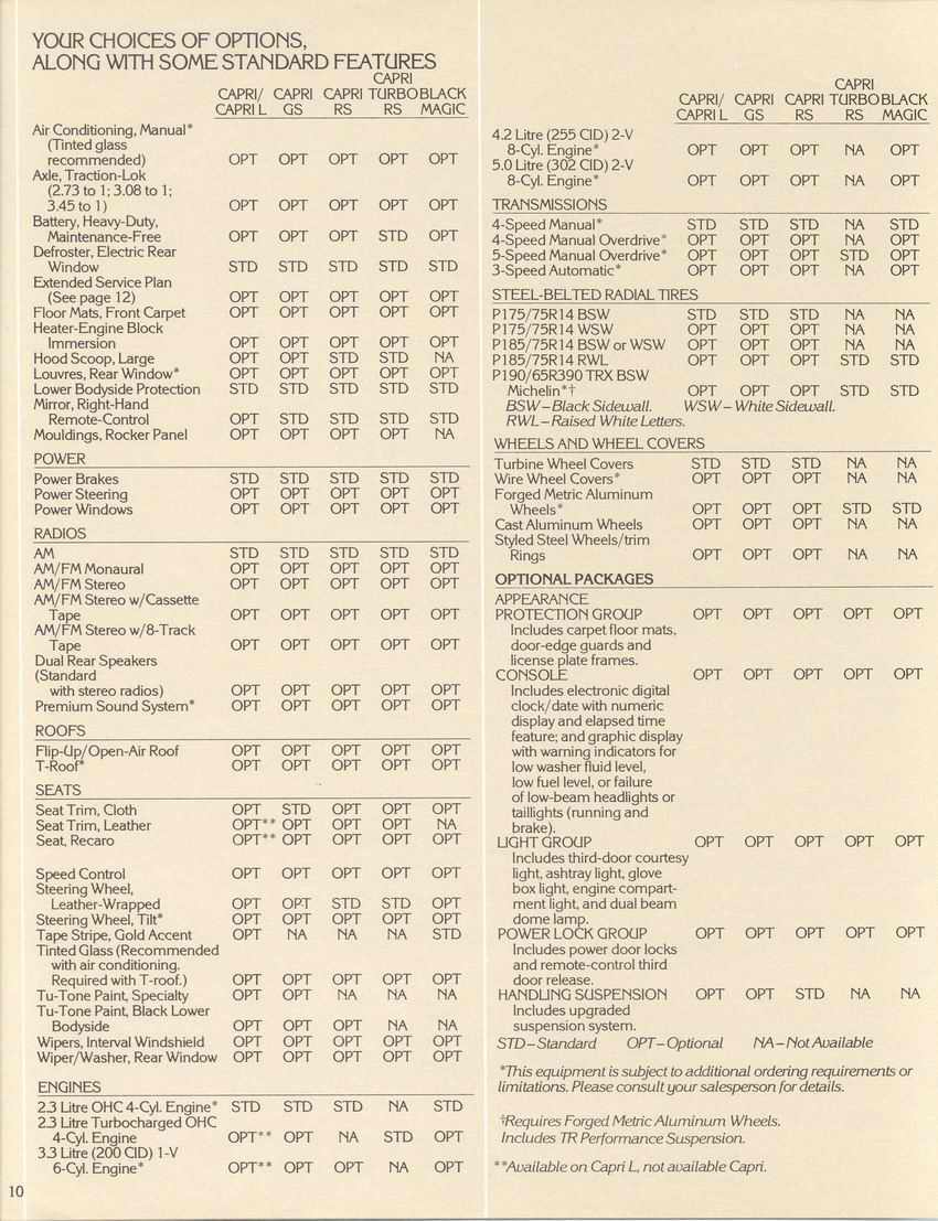 Capri Turbo RS is available. Power windows aren't mentioned.