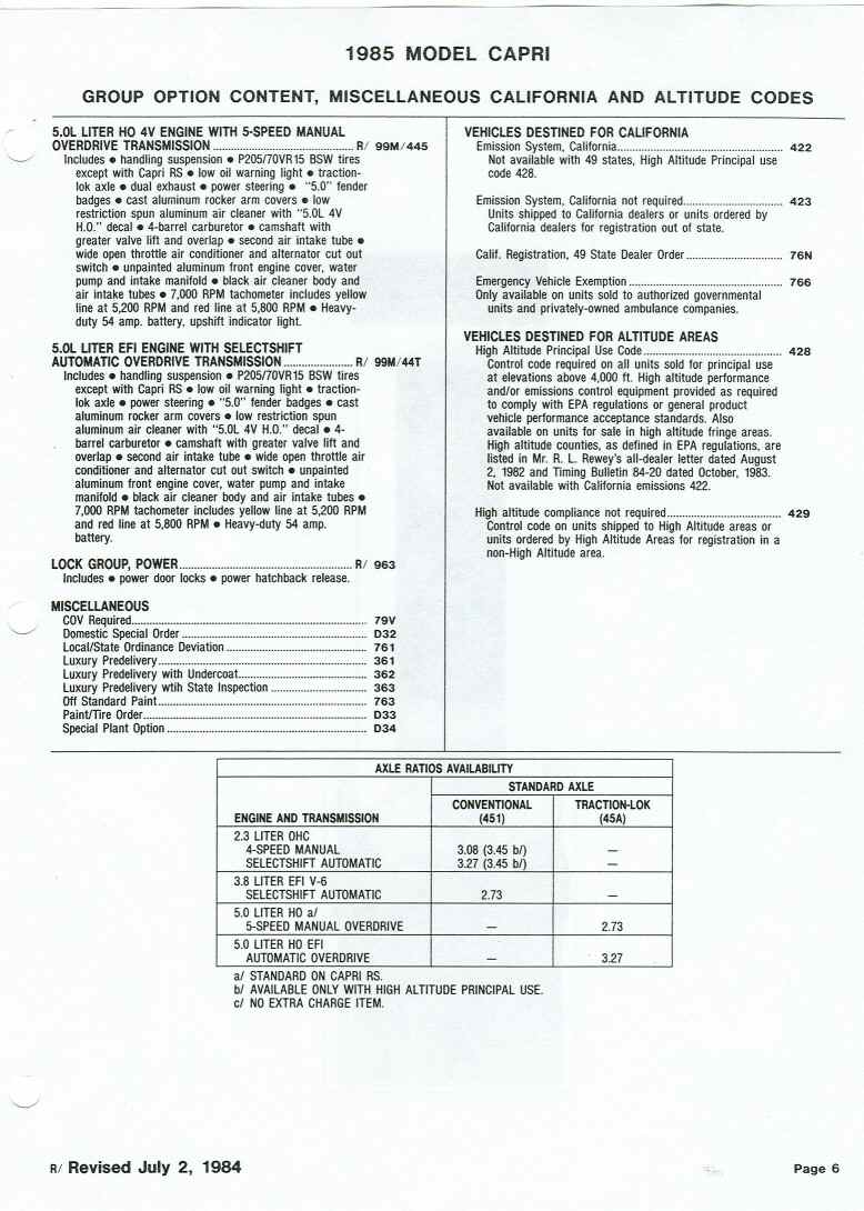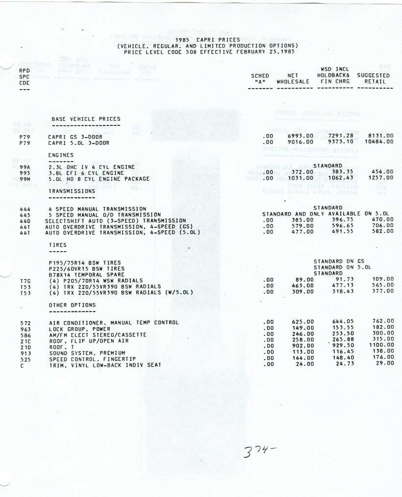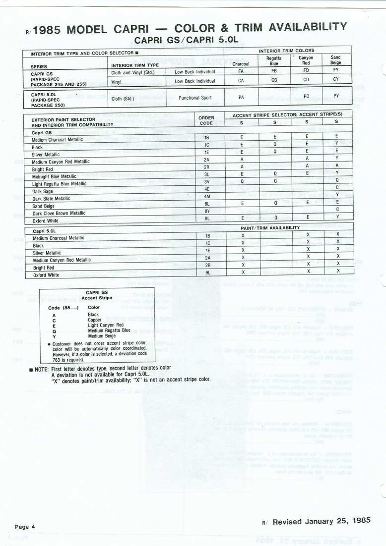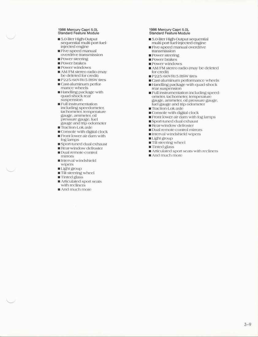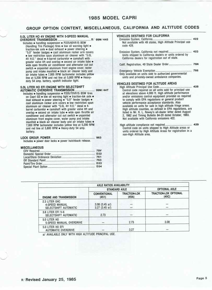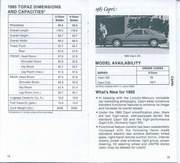 85 Capri standard features and options.