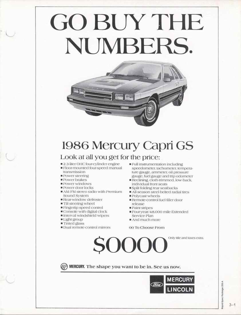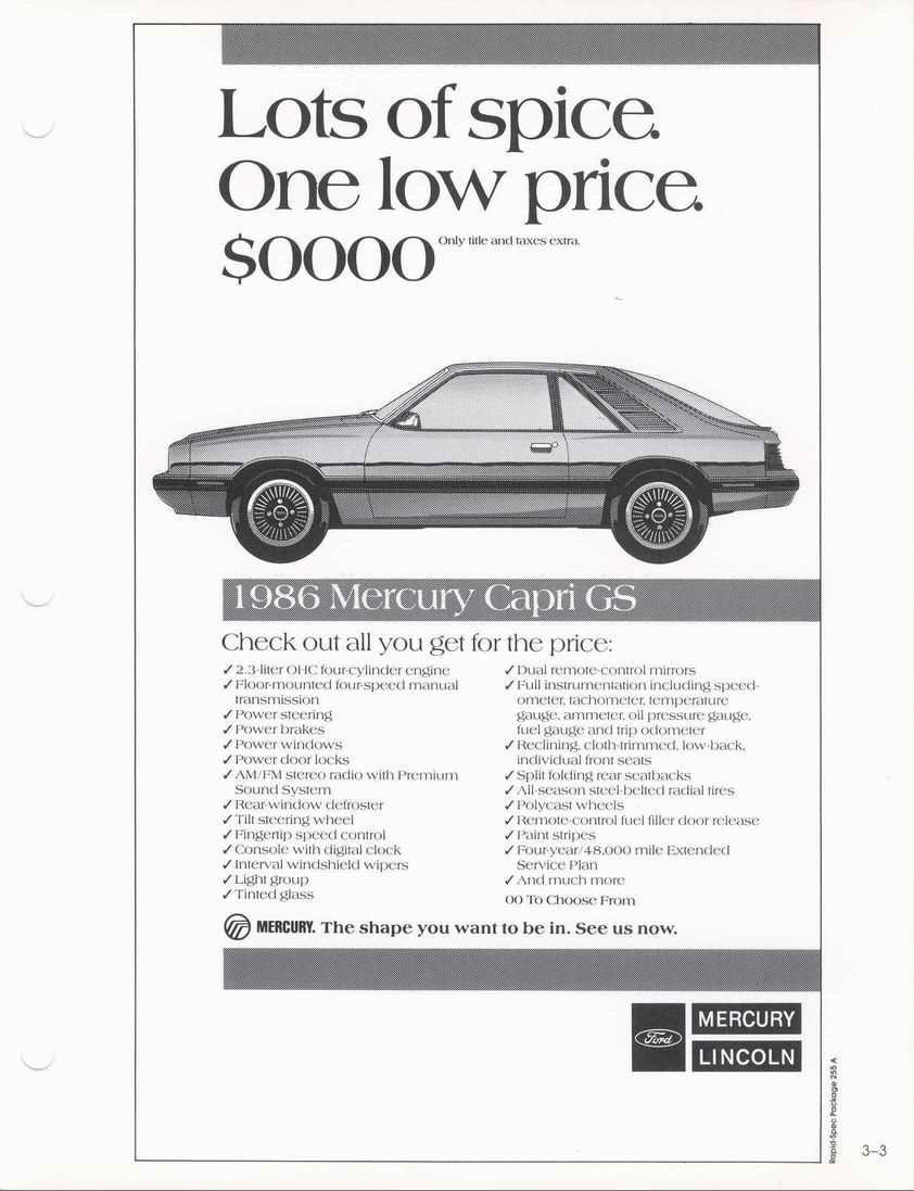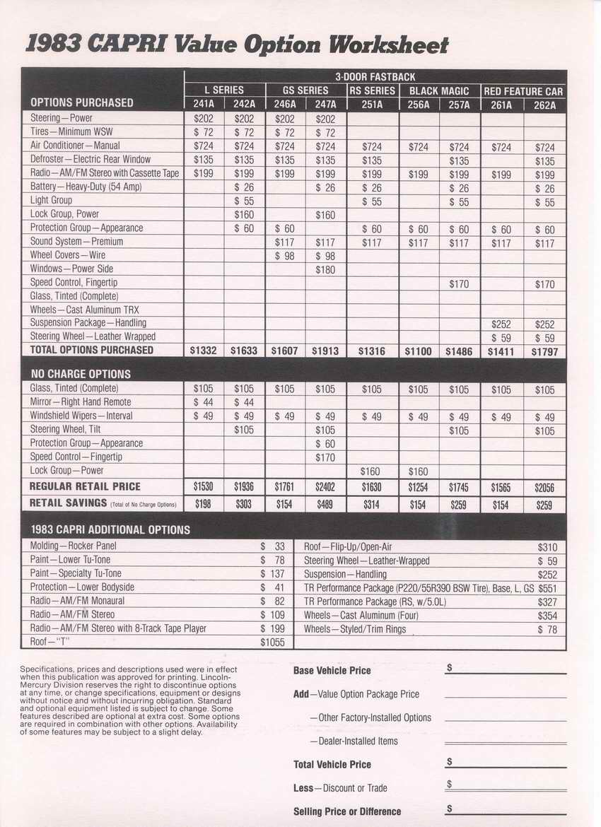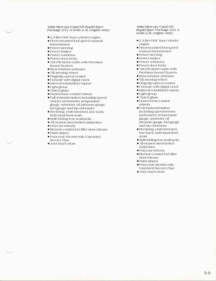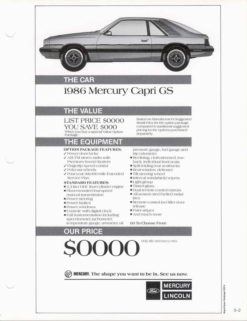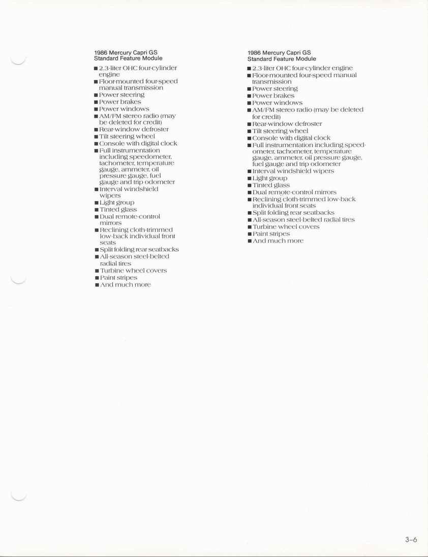 85 Capri standard features and options.