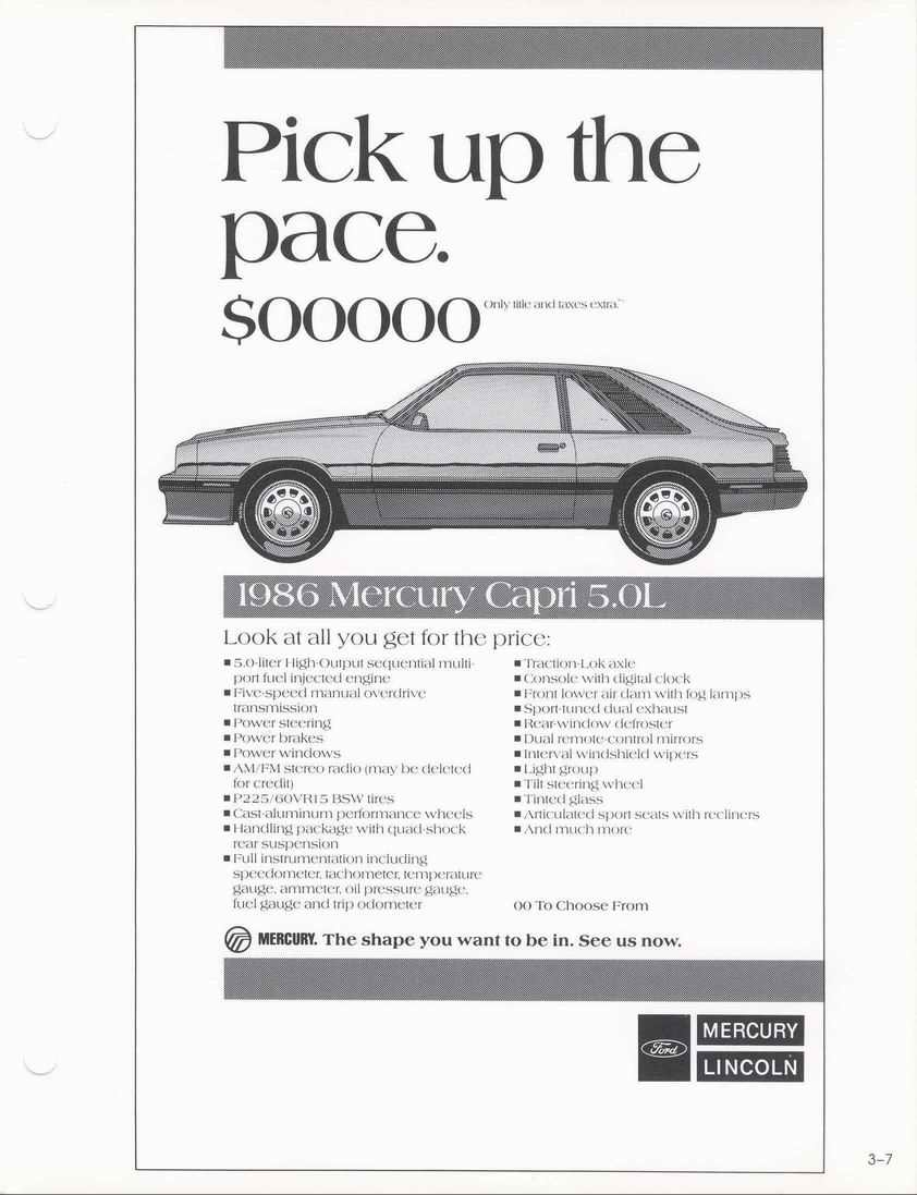 to write up an order for a 1985 Mercury Capri. Scanned and sent to