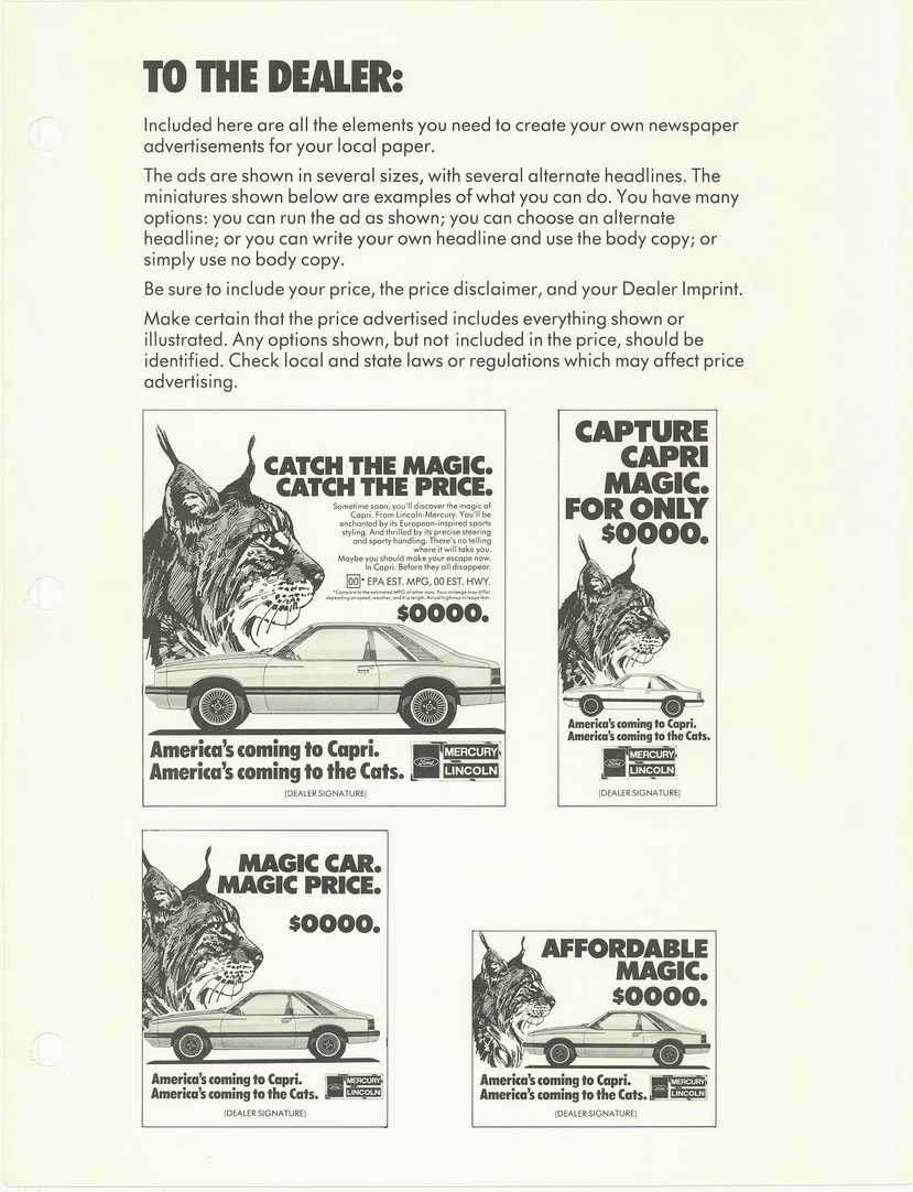 Suggested dealer ads to be placed via newspaper.