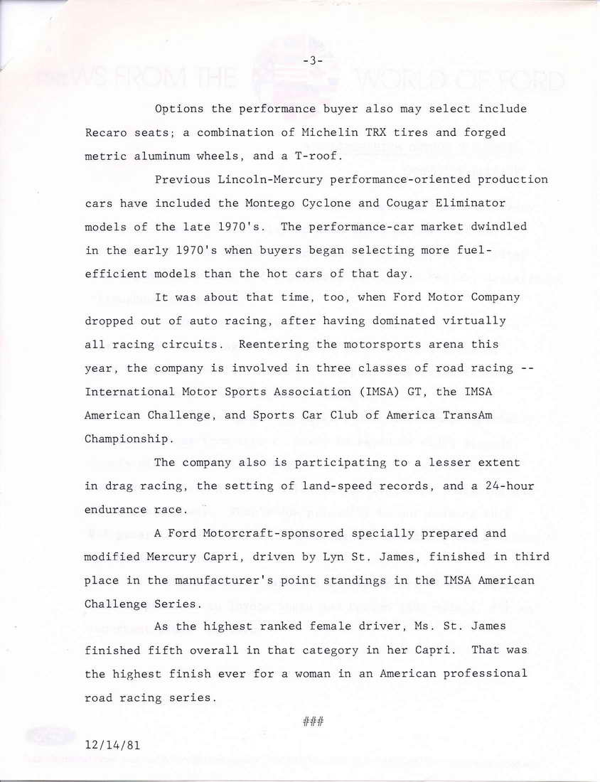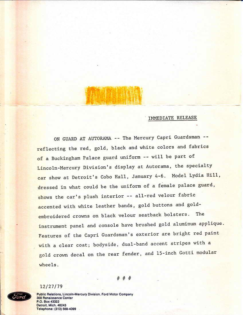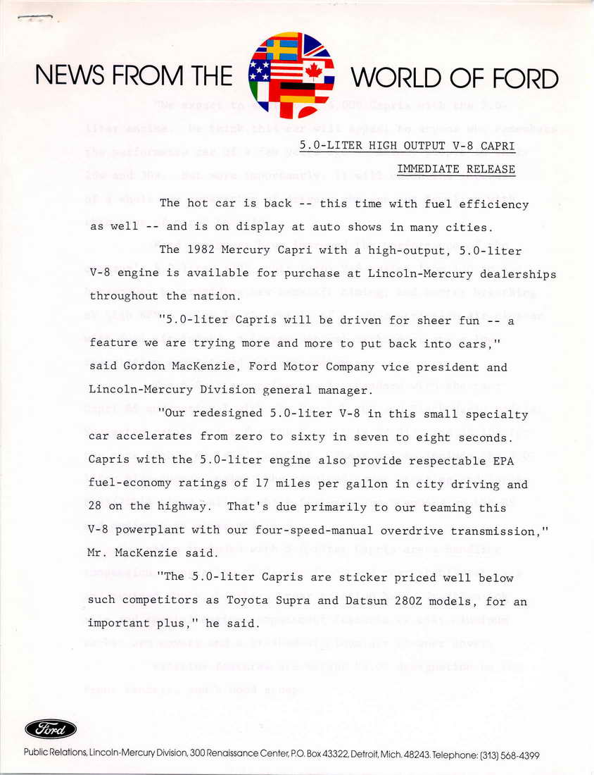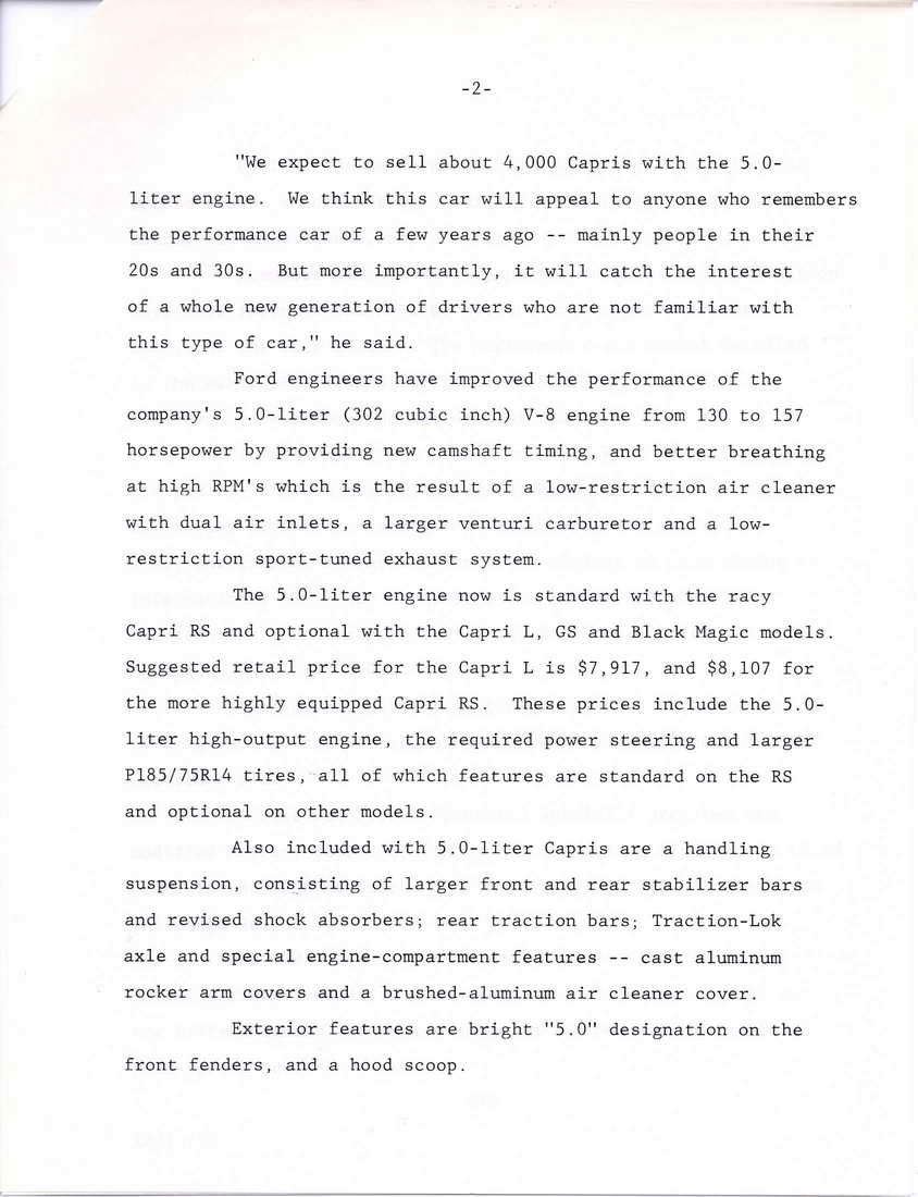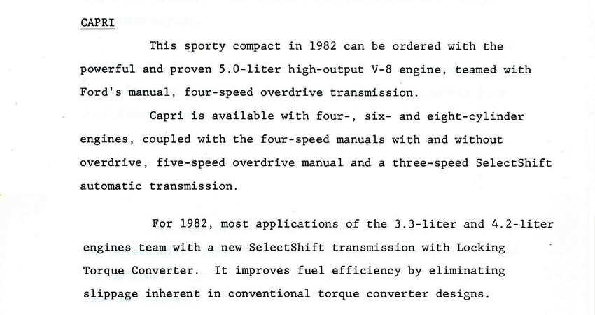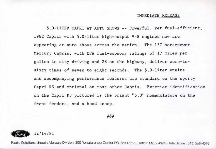 Early 1980 Capri Specs.