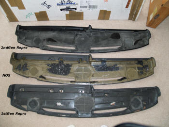 All three pads look decent out of the box. The worst of course is the First Generation reproduction. It is very very "bendy" and sags in the center of the gauge cluster and above the glove box. The NOS pad has an ever so slight bend there too and the Second Generation reproduction mimics it exactly.