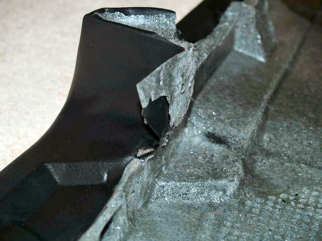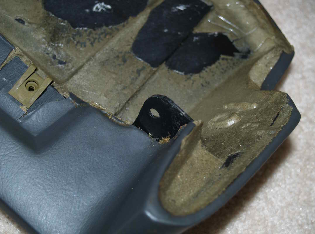 The 2ndGen pad appears to not have much of any real "frame". It does have a flexible internal plastic frame but it is completely covered by the plastic foam material they used to form the majority of the pad. This foam seems to be the perfect material for forming the pad without any need of an internal supporting frame. It is a similar material that you find in the packing of electronic components. It is very very pliable and very durable. The choice of material seems well suited to hold the proper shape without any difficulty. Overtop of the foam, they have applied a thin sheet of textured vinyl. (EDIT: Dashes Direct has told me that this vinyl is from the same OEM manufacurer that supplied for with it 20 some years ago) It appears well bonded to the pad. I did not find any real defects on the top but at a couple of the mounting points, this vinyl covering had not been bonded to the foam well and it was separating. This should be no problem really as the installation will pull that together with screws. Since the internal plastic frame is minimal on this pad, ALL the mounting points are made from the foam that the rest of the pad is made of.