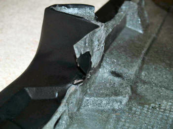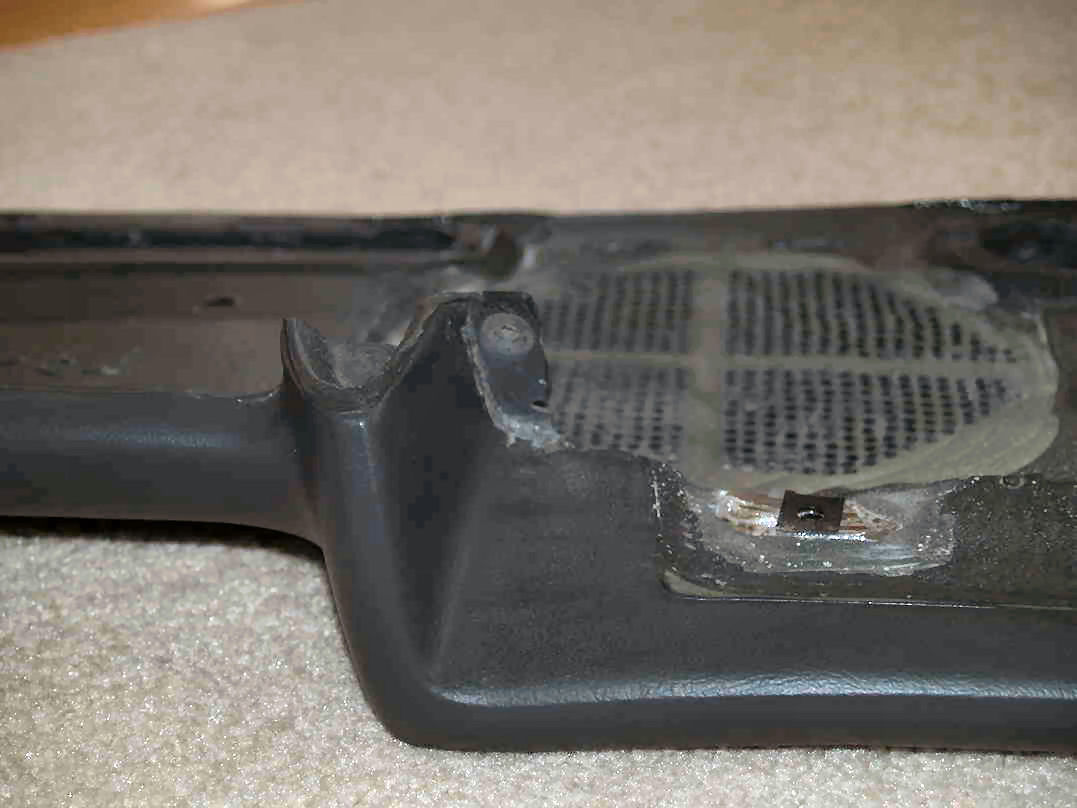 The 2ndGen Reproduction pad looked like it should go on just about as easy as the NOS pad. But that wasn't going to be the case. On the right side, they failed to trim the mounting tabs properly and it REFUSED to go down between the dash hull and the trim. Uh-oh! It was OBVIOUS that Dashes Direct did not do their homework on this one. Shame shame. If they are making these pads exactly like the one I received, then none of them fit out of the box.
