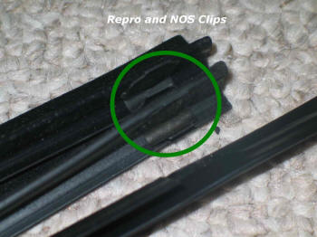 When comparing the NOS pieces to the Repros, here's what I find (Please note! I did not have the older style (79-82?) dew wipes to compare. They are different in that the rubber part sits lower. These repros will fit back to 79...but they will only truly match the later cars):