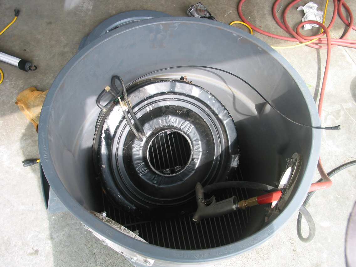 Another plus is that the capacity of the garbage can was MORE than enough for an air cleaner body (see picture). As you can see there is room for the air cleaner, the gun and enough room left over to maneuver.